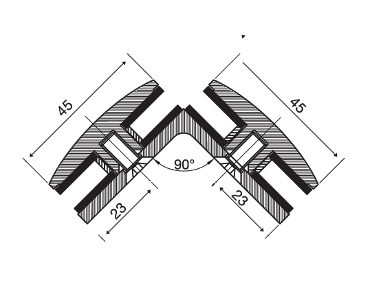 - Kostka łącząca dwie tafle szkła pod kątem 90°
