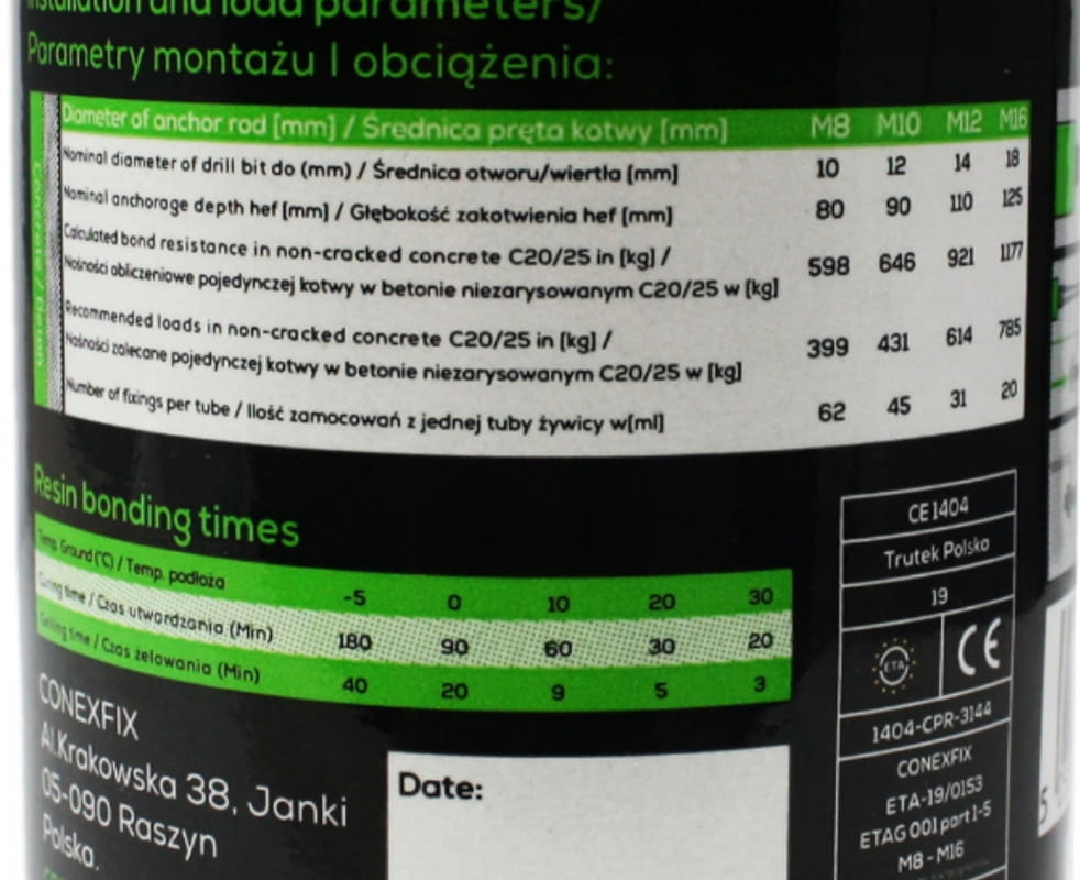 Kotwa chemiczna Conexfix uniwersalna 400ml + 2 szt. mieszacza