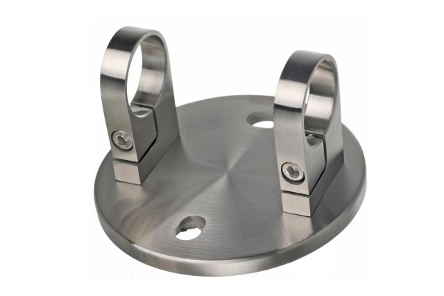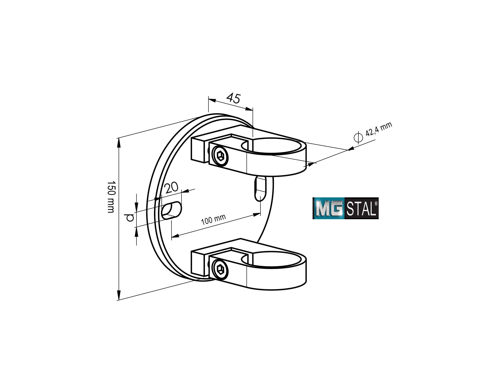 Mocowanie boczne słupka balustrady firmy MG Stal to innowacyjne rozwiązanie umożliwiające stabilne mocowanie słupka o średnicy 42,4mm. Dzięki średnicy krążka mocującego wynoszącej 150mm, produkt oferuje solidne oparcie, umożliwiając montaż słupków do boku schodów. Wykorzystując dwa zaciski do mocowania rury, bez użycia spawania, zapewnia łatwy i efektywny montaż, a wykończenie powierzchni w szlifie nadaje mu estetyczny wygląd. Wykonane z wysokiej jakości stali nierdzewnej AISI 304, mocowanie boczne słupka balustrady gwarantuje trwałość i odporność na warunki atmosferyczne.