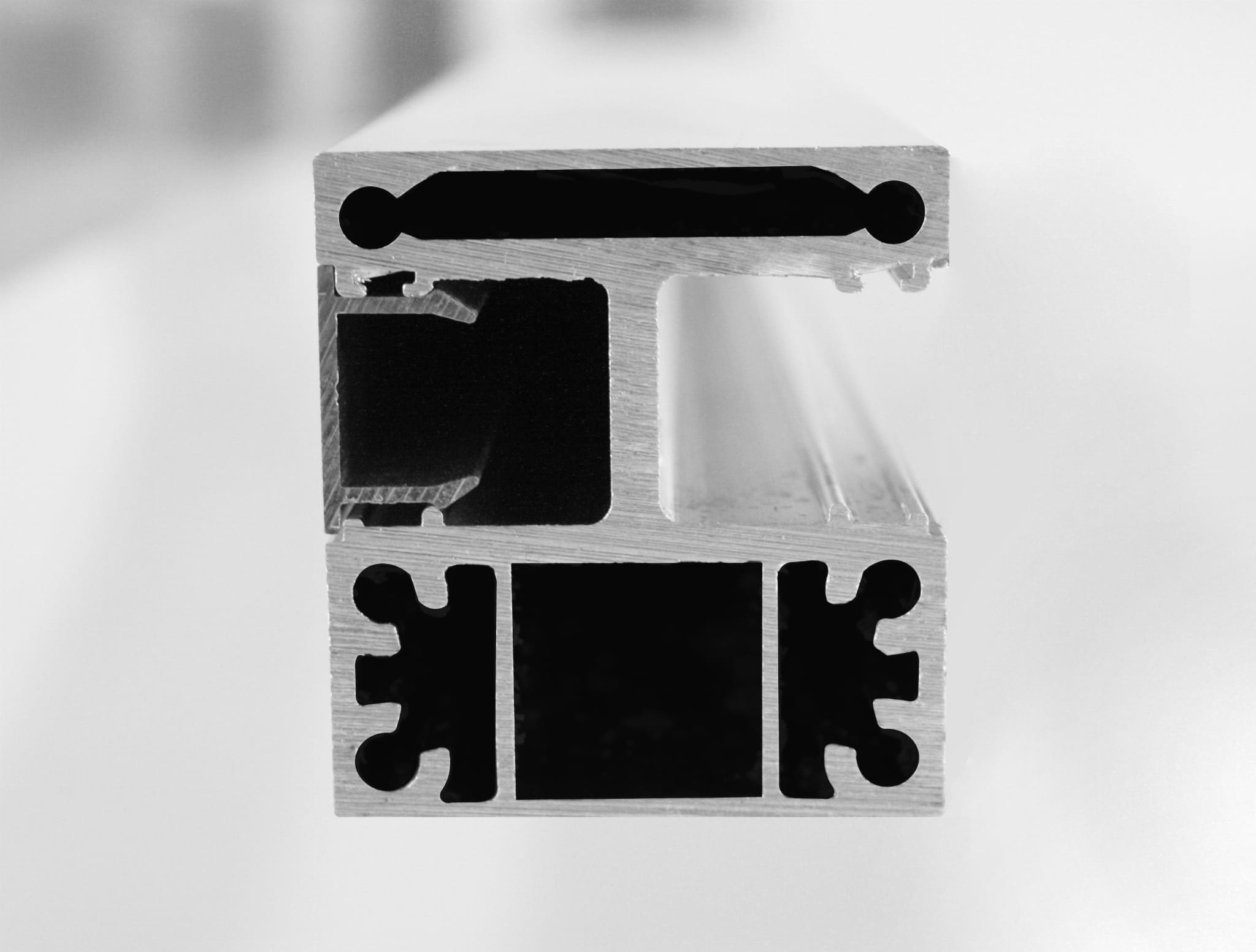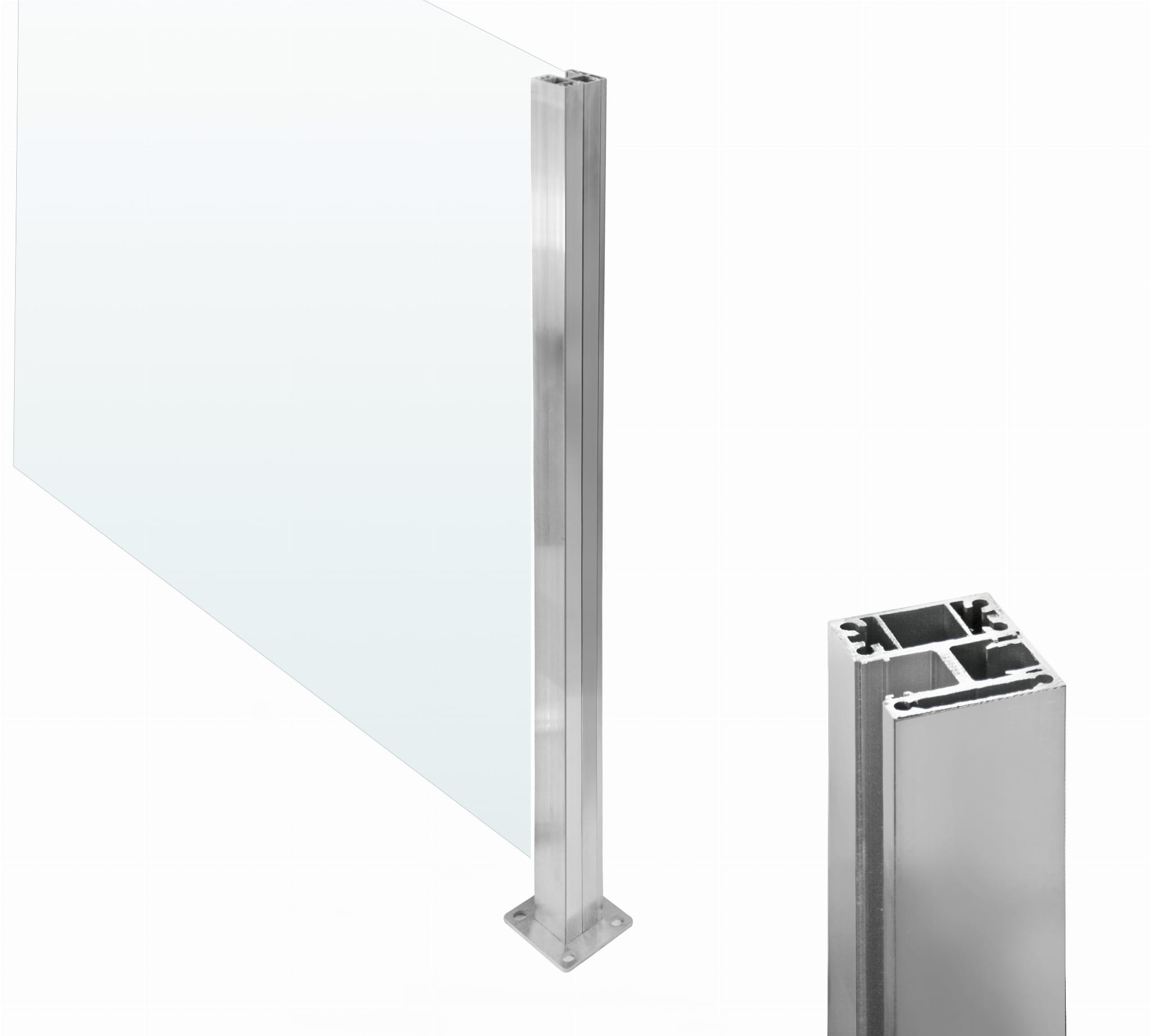 Słupek wykonany z profilu aluminiowego 55x50mm, powierzchnia surowa (przeznaczona do lakierowania proszkowego).