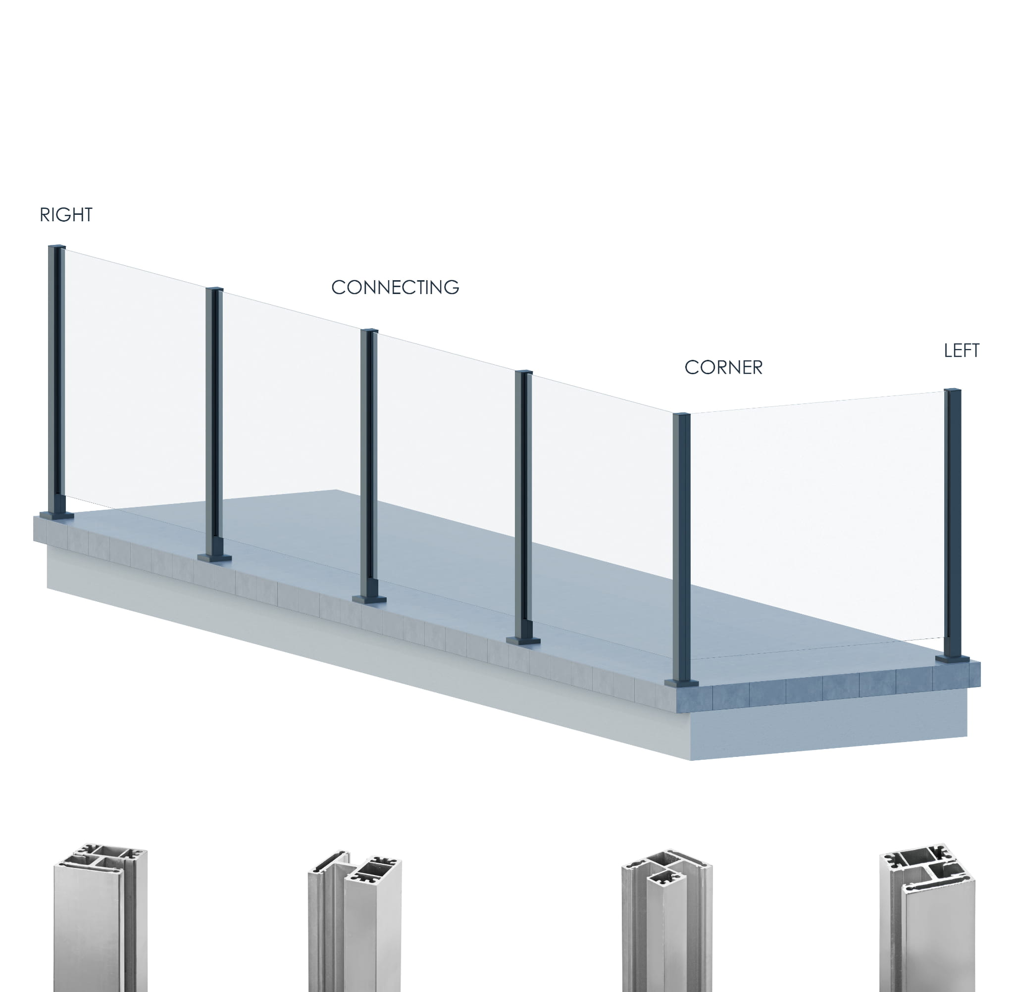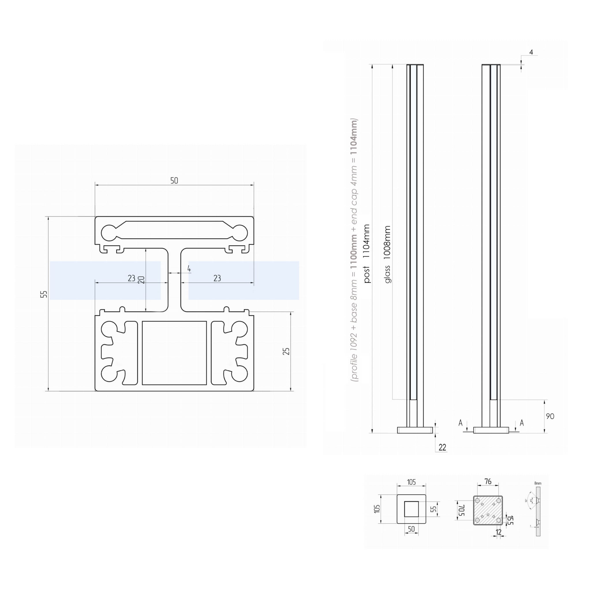 - Słupek (profil + podstawa (gr. 8mm) skręcone ze sobą) + zaślepka górna (gr. 2mm)