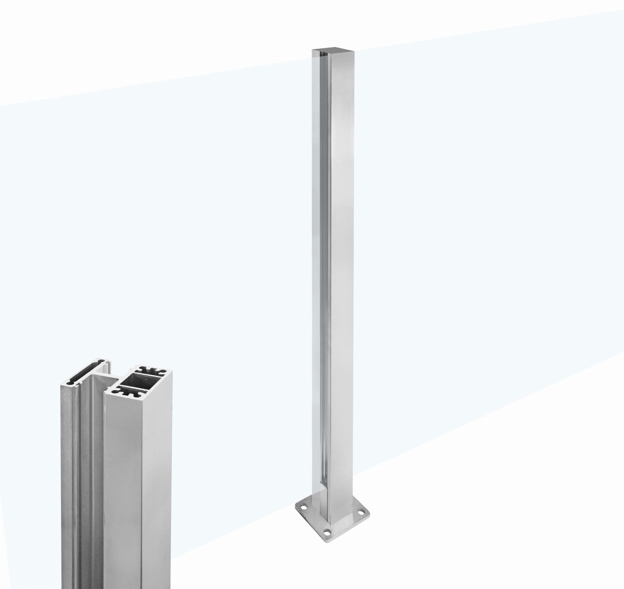 Słupek wykonany z profilu aluminiowego 55x50mm, powierzchnia surowa (przeznaczona do lakierowania proszkowego).
