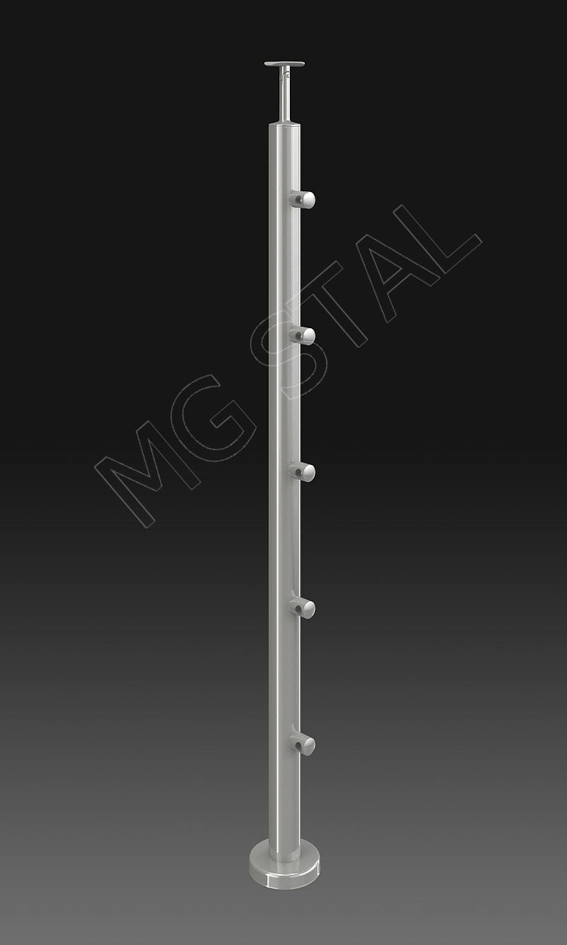 Słupek balustrady nierdzewnej 42,4mm + przelotki 5 szt., szlif
