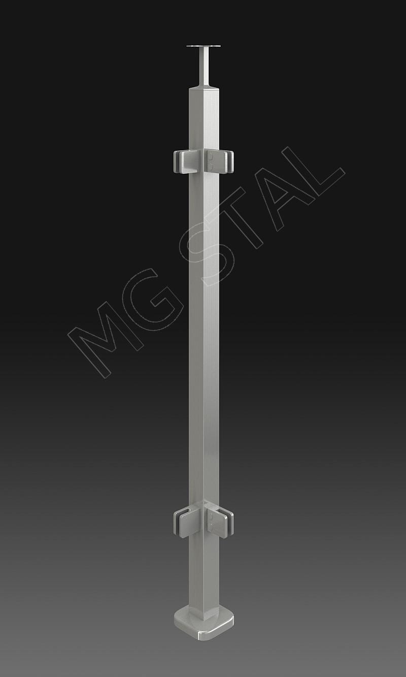 Słupek balustrady szklanej narożny profil 40x40 z czterema uchwytami do szkła, szlif