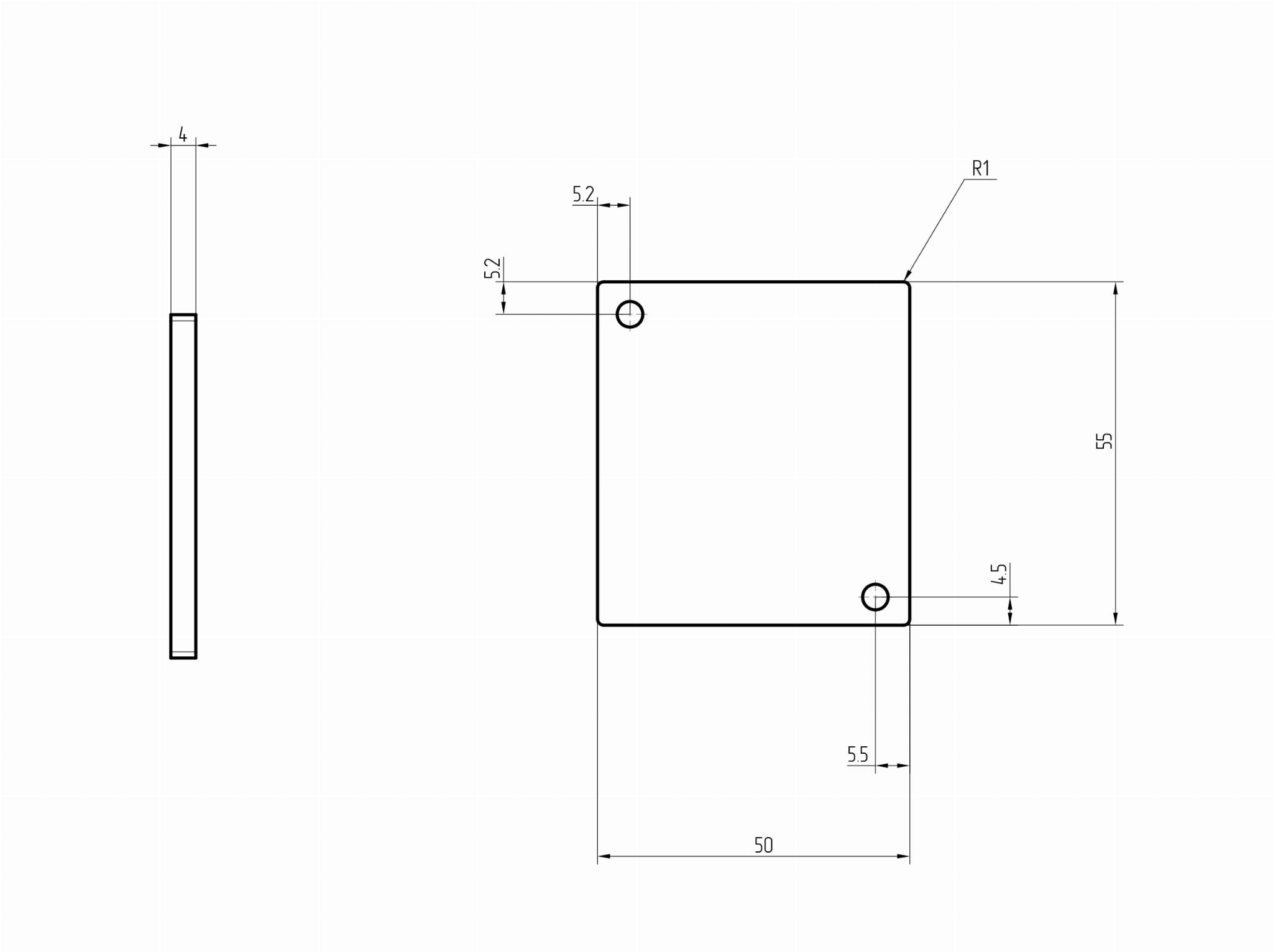 Zaślepka slota narożnego 55x50mm, AISI 304, SUROWA